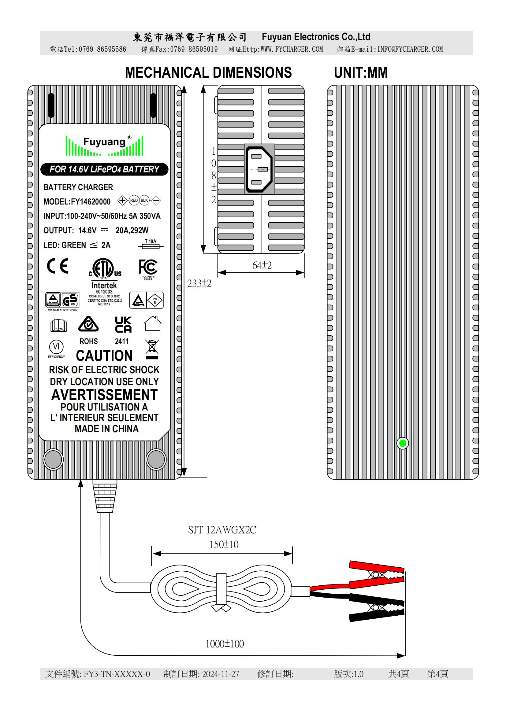 | SURTEMPÉRATURE | Une fois que la température interne atteint 95 ℃, le courant de sortie chutera automatiquement. | ||||||||||